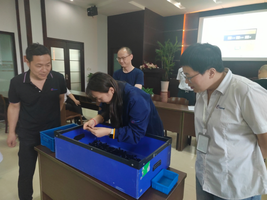 生產部門的主管們也積極參與到此次活動中,為活動增添了更多活力。會議初始,品質部金課長詳細地為大家講解了本次活動規(guī)則,5 人一小組的團隊競賽模式,瞬間點燃了大家的團隊協(xié)作熱情。